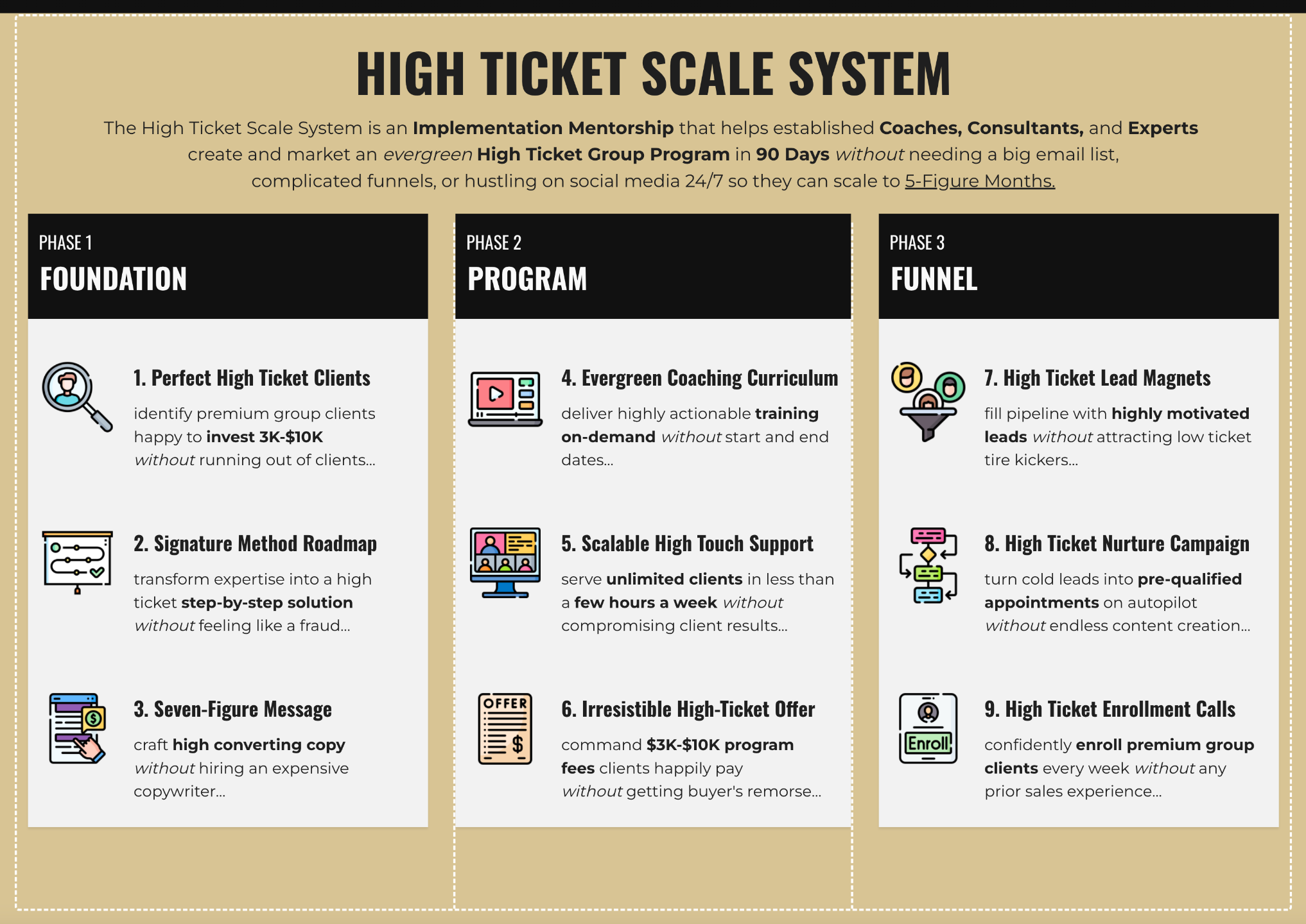 Join us inside the Official Scale High Ticket Community to hang out with other Coaches, Consultants and Experts that are scaling their expertise and income with an evergreen High Ticket Group Program.
