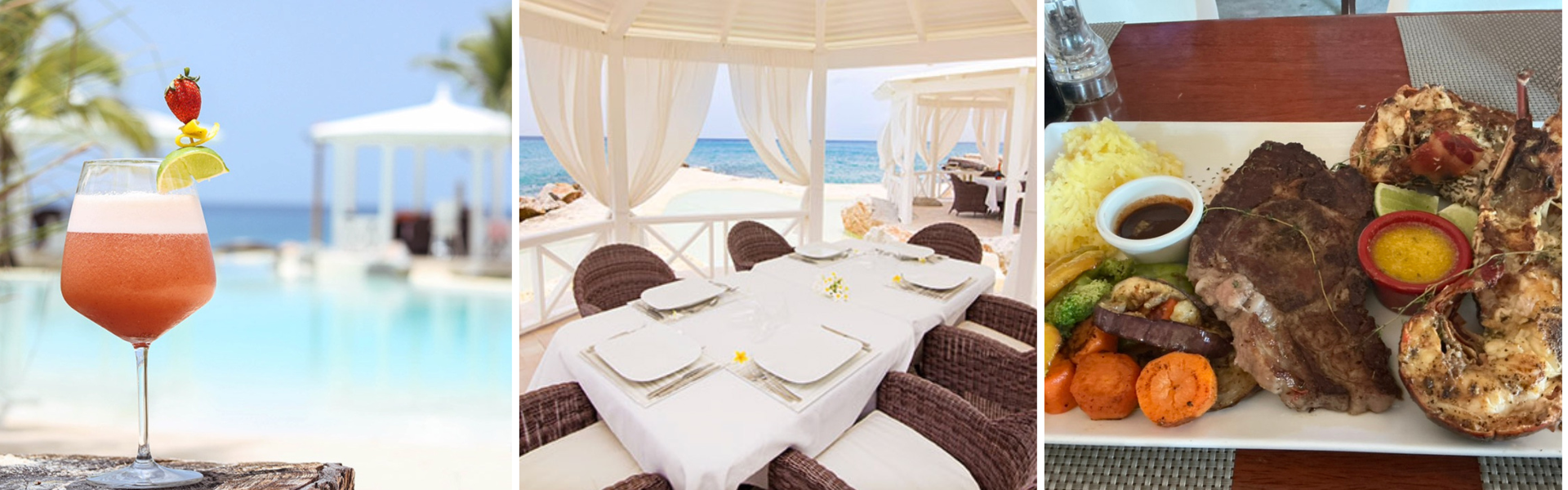 5 sea-water pools, one fresh-water adults-only pool, sunbeds luxurious tropical gardens splendid infinity pools of natural water which blend with the Caribbean Sea’s horizon white and veiled King size sun beds magic impassioned light of the sunsets